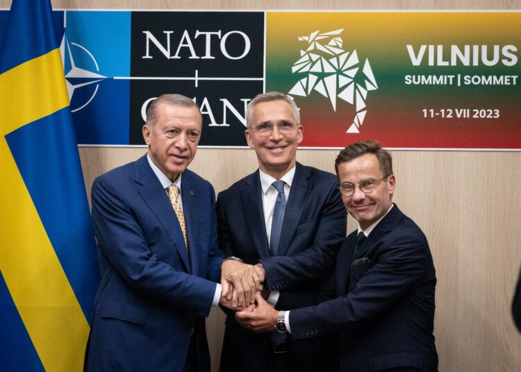 O ile jeszcze 9 lipca 2023 roku prezydent Recep Tayyip Erdoğan twierdził, że Turcja nie odnotowała „wystarczających postępów” ze strony Szwecji, aby poprzeć jej wniosek o przystąpienie do NATO, o tyle już następnego dnia, tuż przed rozpoczęciem szczytu NATO w Wilnie, Ankara zgodziła się na przekazanie protokołu akcesyjnego Szwecji do Sojuszu do Wielkiego Zgromadzenia Narodowego Turcji. Oświadczenie wydano po trójstronnych rozmowach między premierem Szwecji Ulfem Kristerssonem, prezydentem Recepem Tayyipem Erdoğanem oraz Sekretarzem Generalnym NATO Jensem Stoltenbergiem.