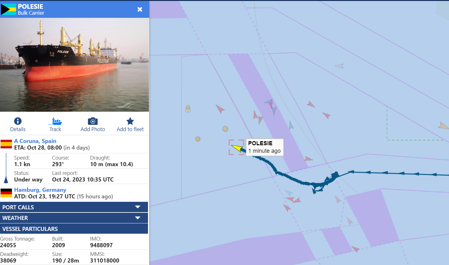 Do zderzenia doszło do u podejścia do portów Hamburg, Bremerhaven i Kanału Kilońskiego. Zderzyły się statki towarowe Polesie, należący do Polskiej Żeglugi Morskiej ze Szczecina i Verity brytyjskiego armatora Casper Chartering Ltd. Havariekommand, dowództwo ds. morskich sytuacji awaryjnych. poinformowało, że uratowano jednego rozbitka z brytyjskiej jednostki. Poszukiwania kilku innych cały czas trwają.