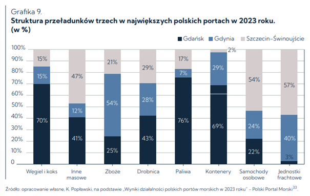Ekspert zaznacza, że w tym kontekście (oraz w świetle geopolitycznych napięć, takich jak wojna w Ukrainie czy między Izraelem a Hamasem) coraz większą wagę zaczną odgrywać porty oraz rozwój infrastruktury z nimi związany. W latach 2013-2022 polskie porty zanotowały intensywny rozwój, dwukrotnie zwiększając wielkość przeładunków. Dr Popławski podkreśla, że wzrosty wynikały w dużej mierze “ze znacznych inwestycji państwa w politykę energetyczną”, a rozwój nafto- i gazoportów stał się również skutecznym zabezpieczeniem przed rosyjskim szantażem energetycznym.
