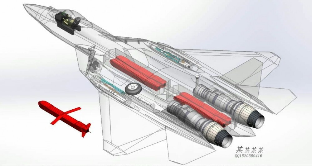 Umiejscowienie rakiet Ch-69 w wewnętrznych komorach Su-57