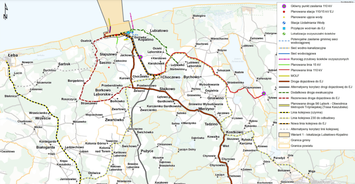 Co ważne, lokalizacja Lubiatowo-Kopalino otrzymała w grudniu decyzję przyłączeniową od Polskich Sieci Elektroenergetycznych. Decyzja ta warunkuje i reguluje zasadę wyprowadzenia wyprodukowanej energii z elektrowni jądrowej do Krajowego Systemu Energetycznego. Przewagą lokalizacji elektrowni w Słajszewie jest również jej bezpośredni dostęp do morza a więc z jednej strony ułatwienie na etapie budowy poprzez specjalny pirs przeładunkowy tzw. MOLF, dzięki obecności którego na teren prac mogłyby być dostarczane najcięższe i najtrudniejsze elementy bezpośrednio ze statków, a także już na etapie operacyjnym – dostęp do wody służącej chłodzeniu reaktorów.
