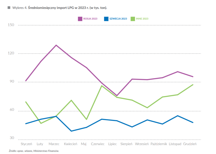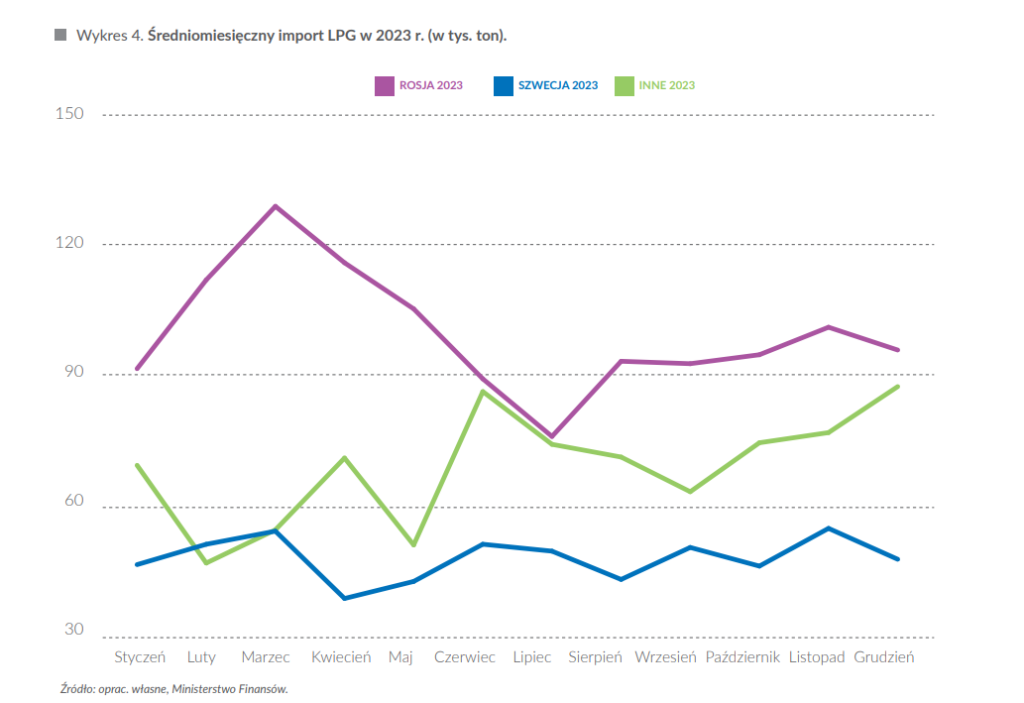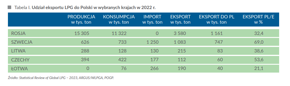 W 2020 roku dostawy LPG z Rosji pokrywały 65,2 procent importu. Co interesujące według raportu fizyczne dostawy LPG z Rosji w 2023 roku zwiększyły się o 43 tys. ton rok do roku – do poziomu 1,2 mln ton. Polska jest ważnym rynkiem eksportowym dla Rosji – w 2023 roku 32,3 procent całościowego eksportu LPG z Rosji przypadło na dostawy do Polski.