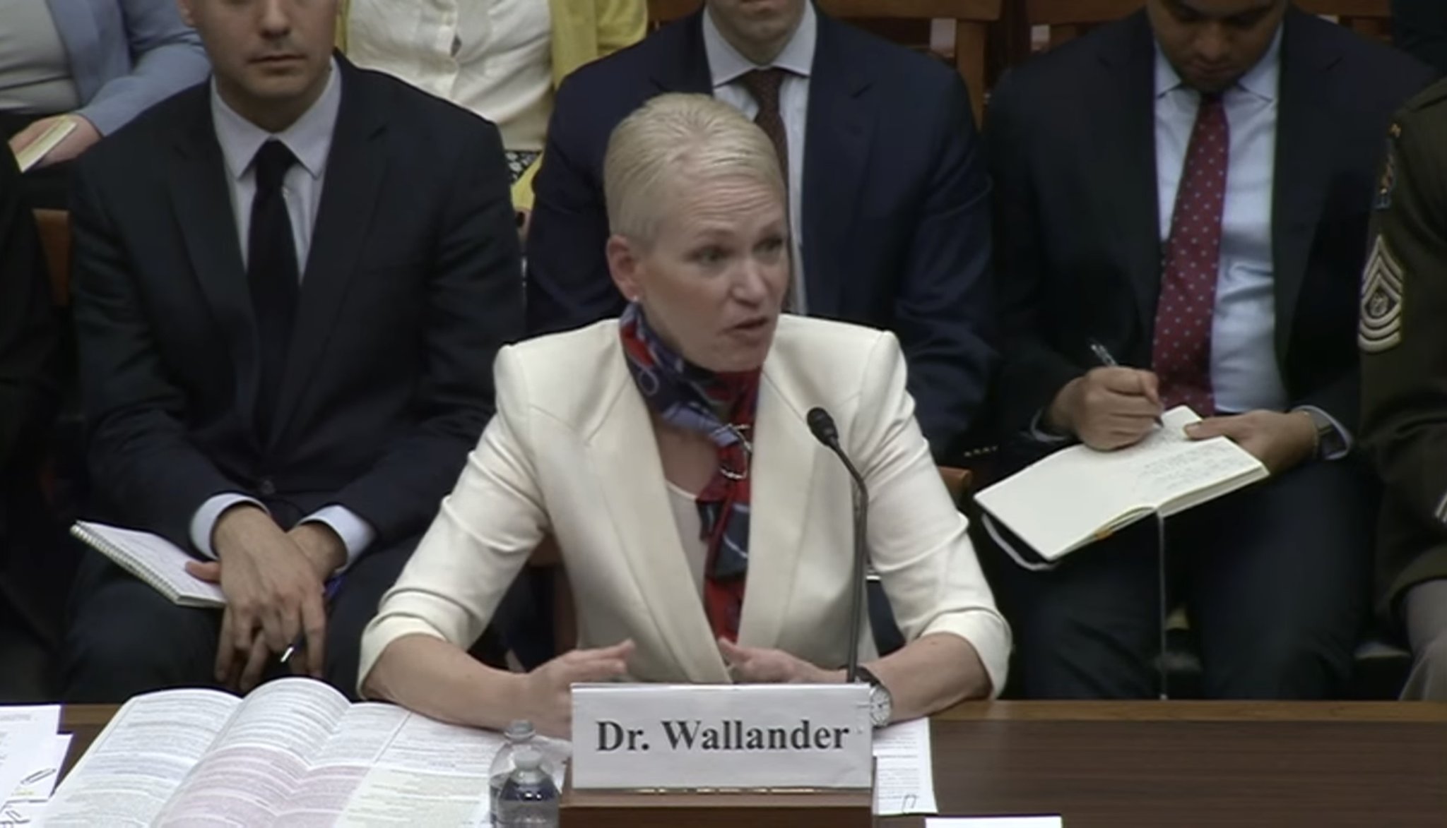 Wallander zapytana przez kongresmena republikanów Austina Scotta o to dlaczego administracja USA nie wspiera, a krytykuję Ukrainę za jej skuteczne ataki na rosyjską infrastrukturę energetyczną odpowiedziała: „Jeżeli chodzi o ataki na infrastrukturę krytyczną (Rosji), kwestia leży tu w jej cywilnym charakterze. Jesteśmy w tej kwestii zaniepokojeni, gdyż Ukraina zobowiązała się do przestrzegania najwyższych standardów prawa wojennego. Przestrzeganie tego prawa jest elementarną podstawa przynależności do europejskiej demokracji”. – wskazała.